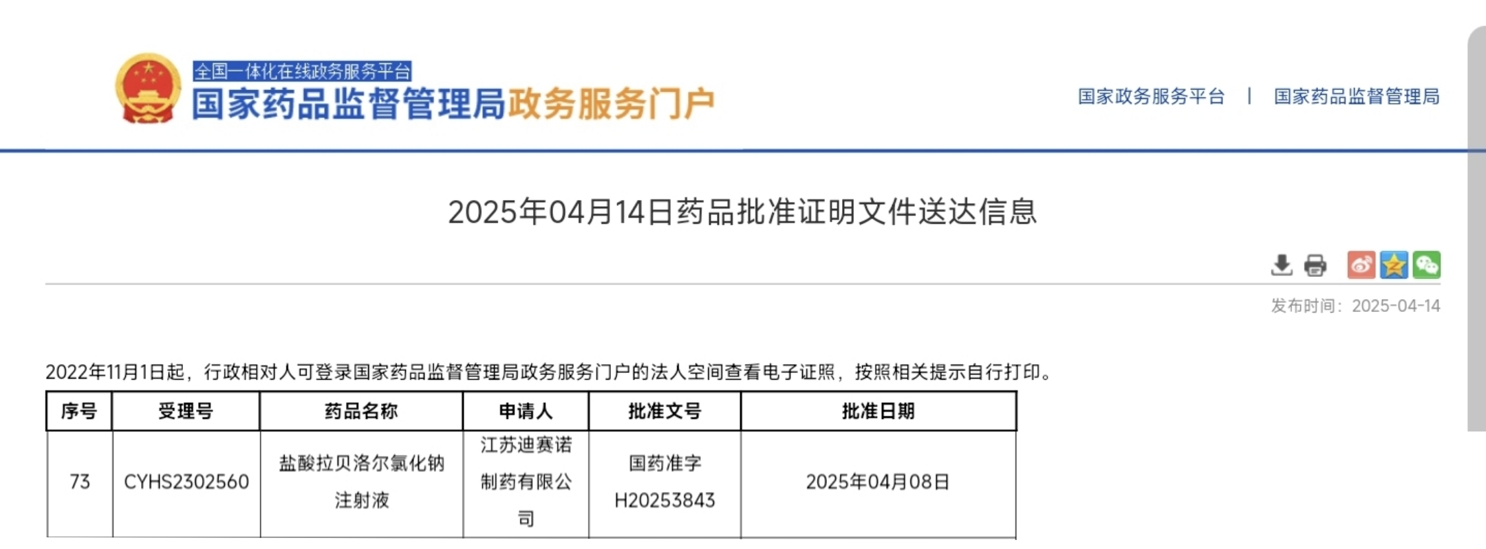 2025年4月8日,米兰官方网站的盐酸拉贝洛尔氯化钠注射液(国药准字H20253843)成功获得国家药品监督管理局(NMPA)批准上市,该产品是公司的化药3类仿制药,是该品种药物的国内首仿。这一成果标志着公司在心血管领域的产品布局迈上新台阶,也为广大患者提供了更优质的用药选择。